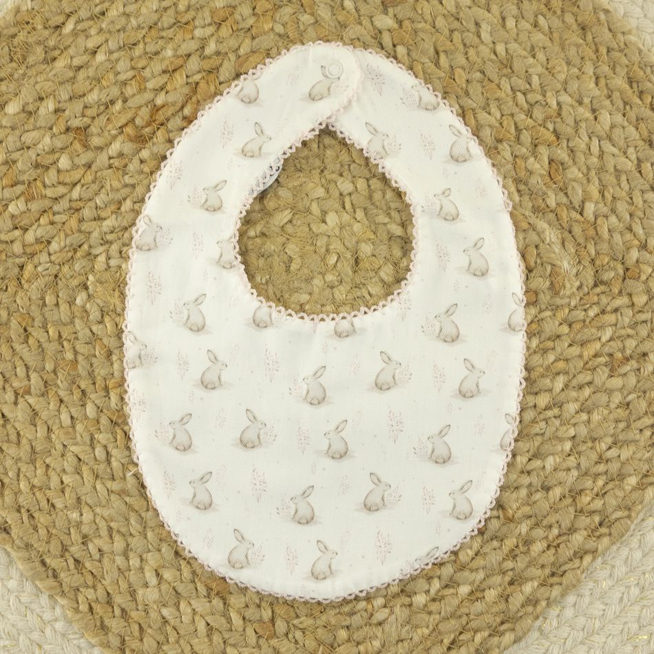 Con un encantador estampado de conejitos en tonos suaves y un delicado ribete rosa, combina funcionalidad y estilo en una sola prenda.