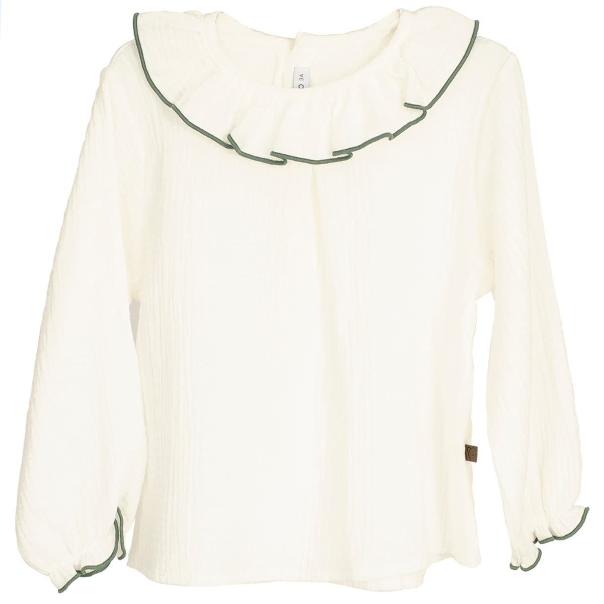 Una blusa elegante y práctica, ideal para dar un aire romántico a los conjuntos de tu peque tanto en el día a día como en ocasiones especiales ✨.