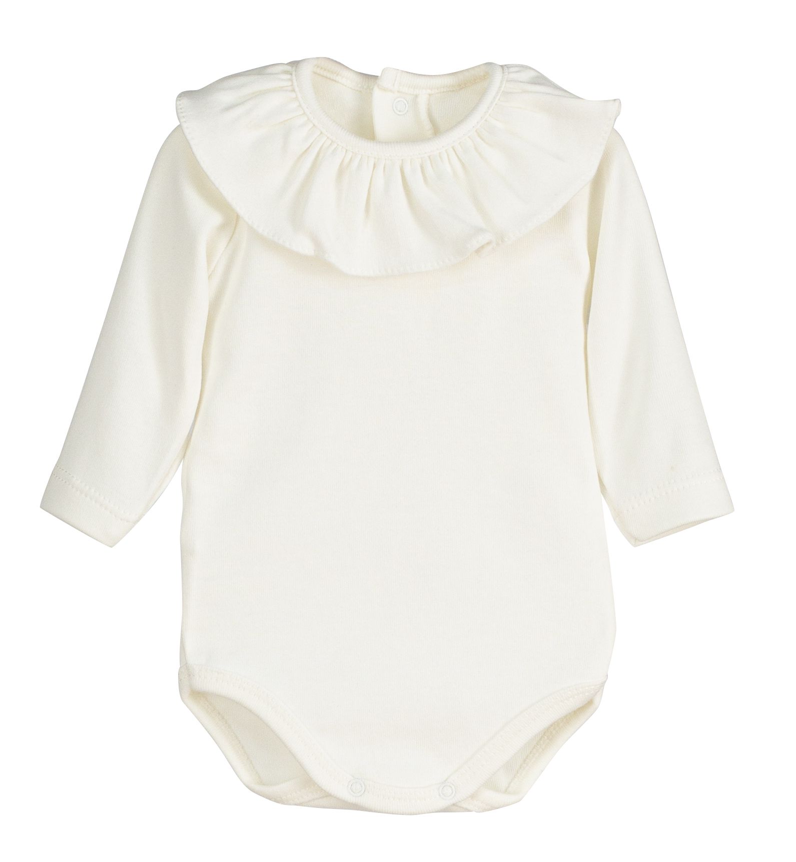 Delicado y atemporal body de bebé en color crudo con cuello volante, una prenda básica imprescindible para crear looks clásicos y elegantes 👶✨.