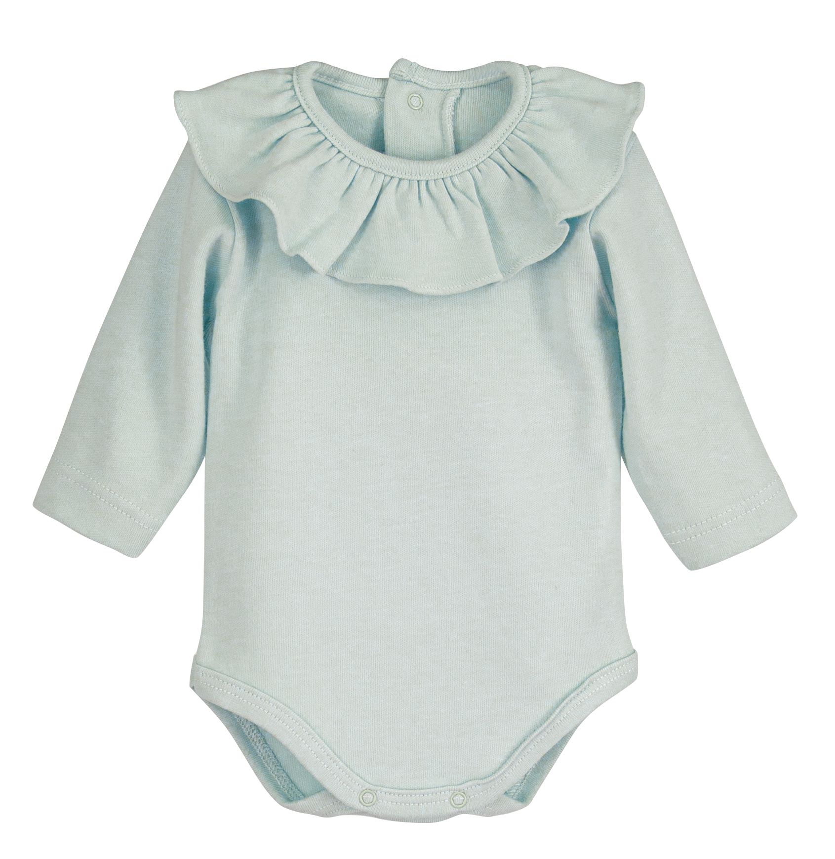 Delicado body de bebé en color verde agua con elegante cuello volante, una prenda ideal para looks dulces y cuidados 👶✨.