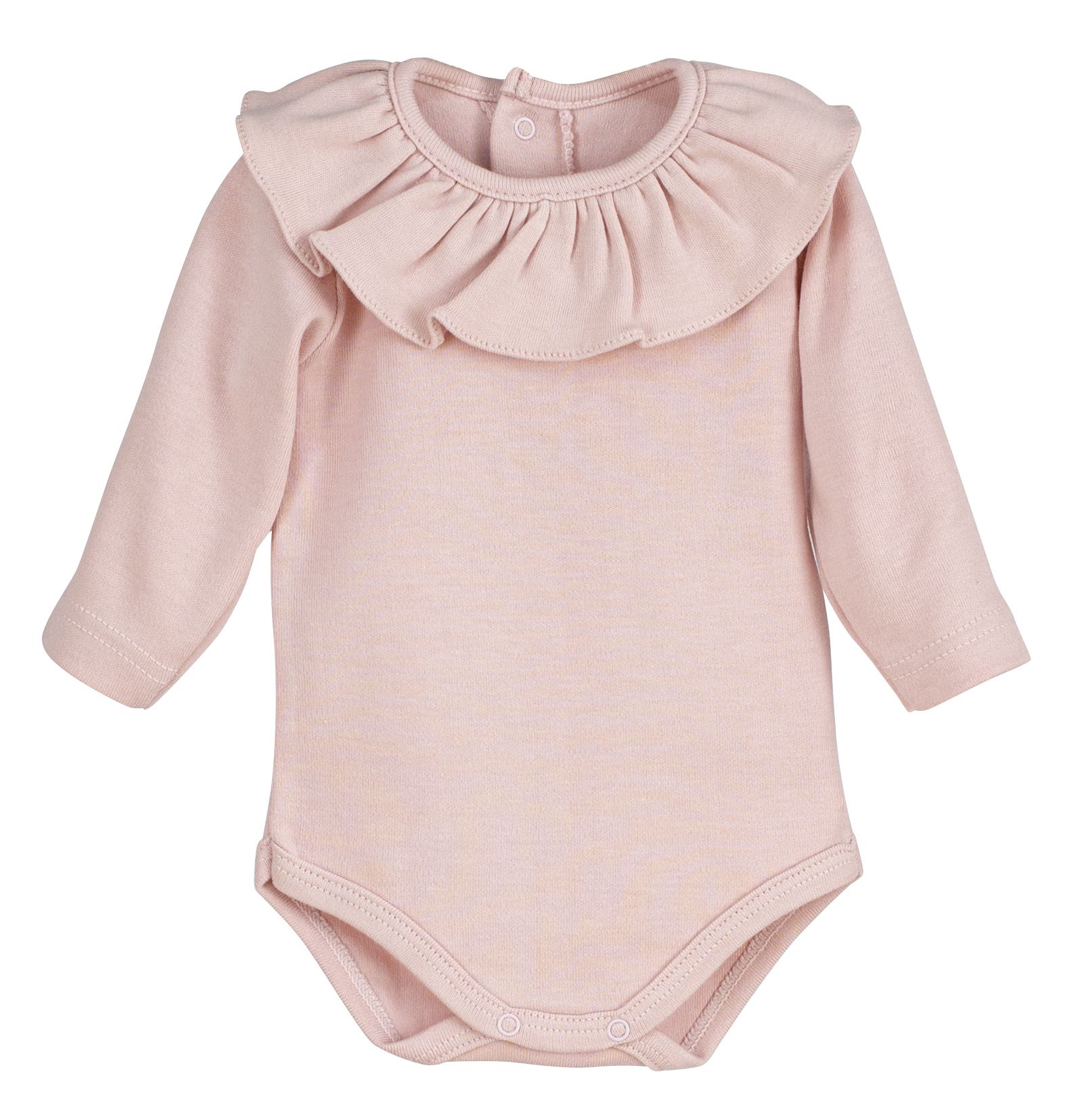 Elegante y dulce body de bebé en color rosa empolvado con cuello volante, un básico imprescindible para looks clásicos y delicados 👶🌸.
