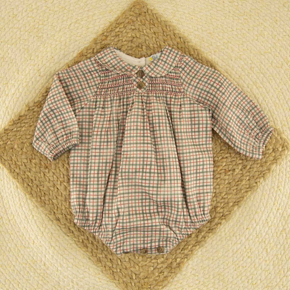 🧸 Ranita de niño con estampado de cuadros en tonos verde, crudo y rojo, un diseño clásico y encantador que combina elegancia y confort para los más pequeños.