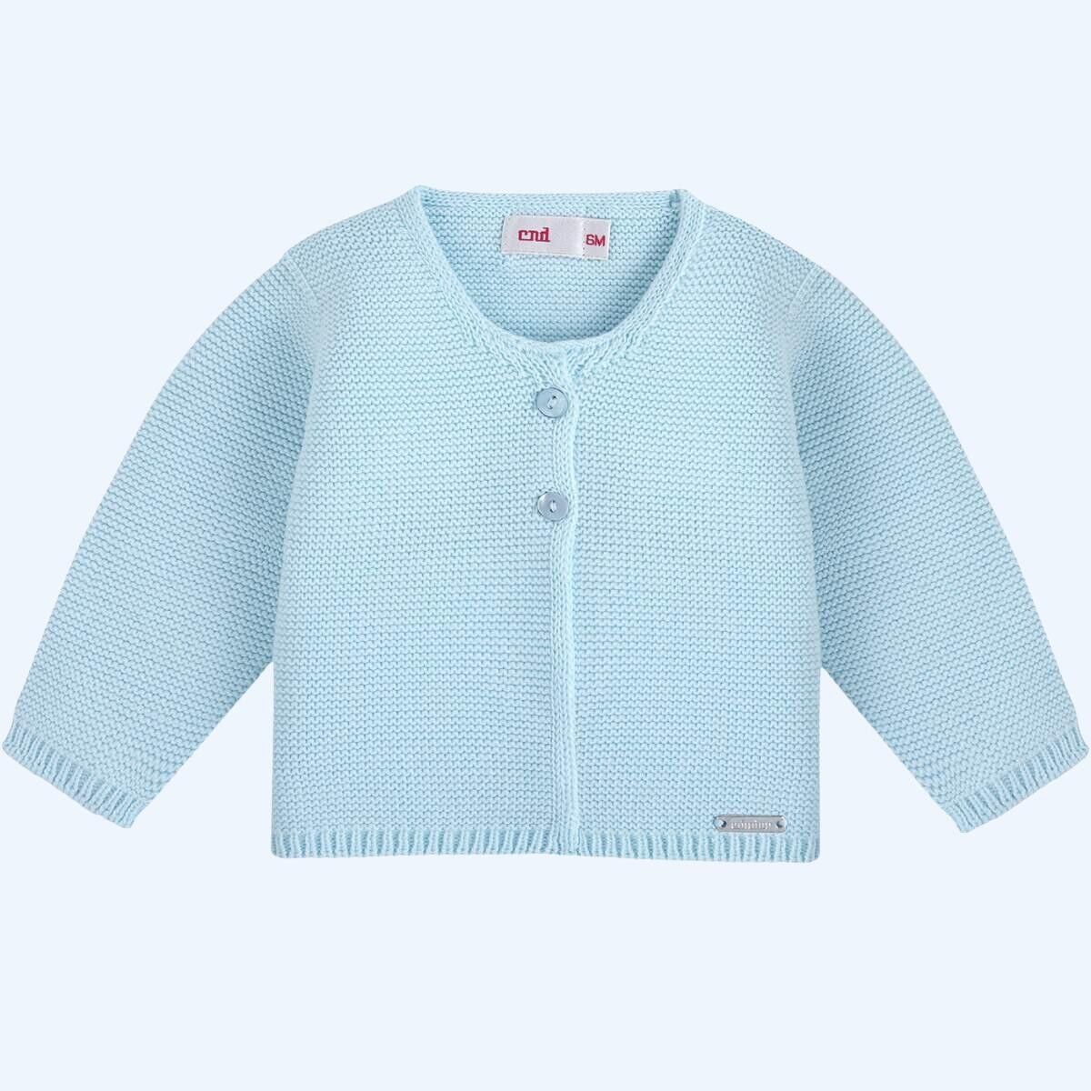 Chaqueta larga punto bobo en color AZUL BEBÉ.