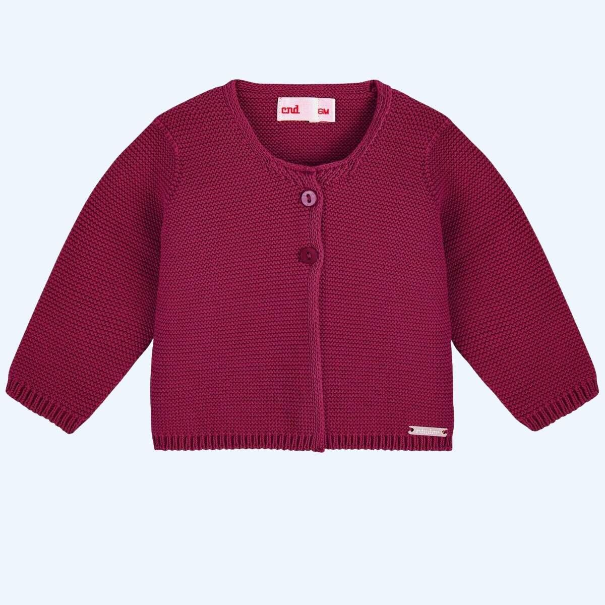 Chaqueta larga punto bobo en color GRANATE.