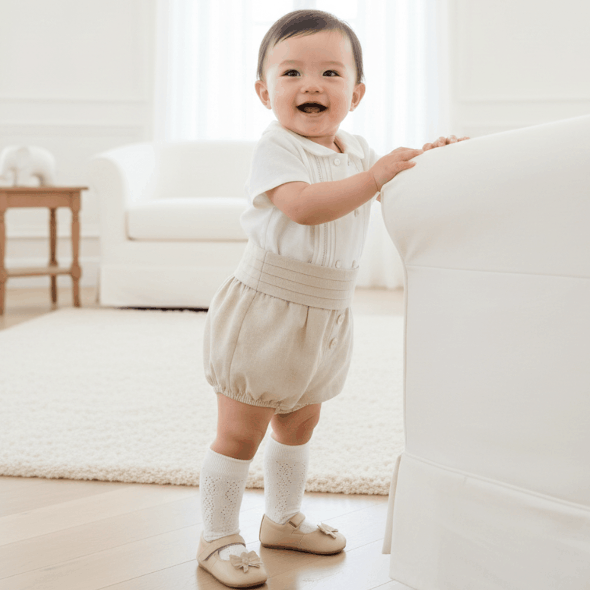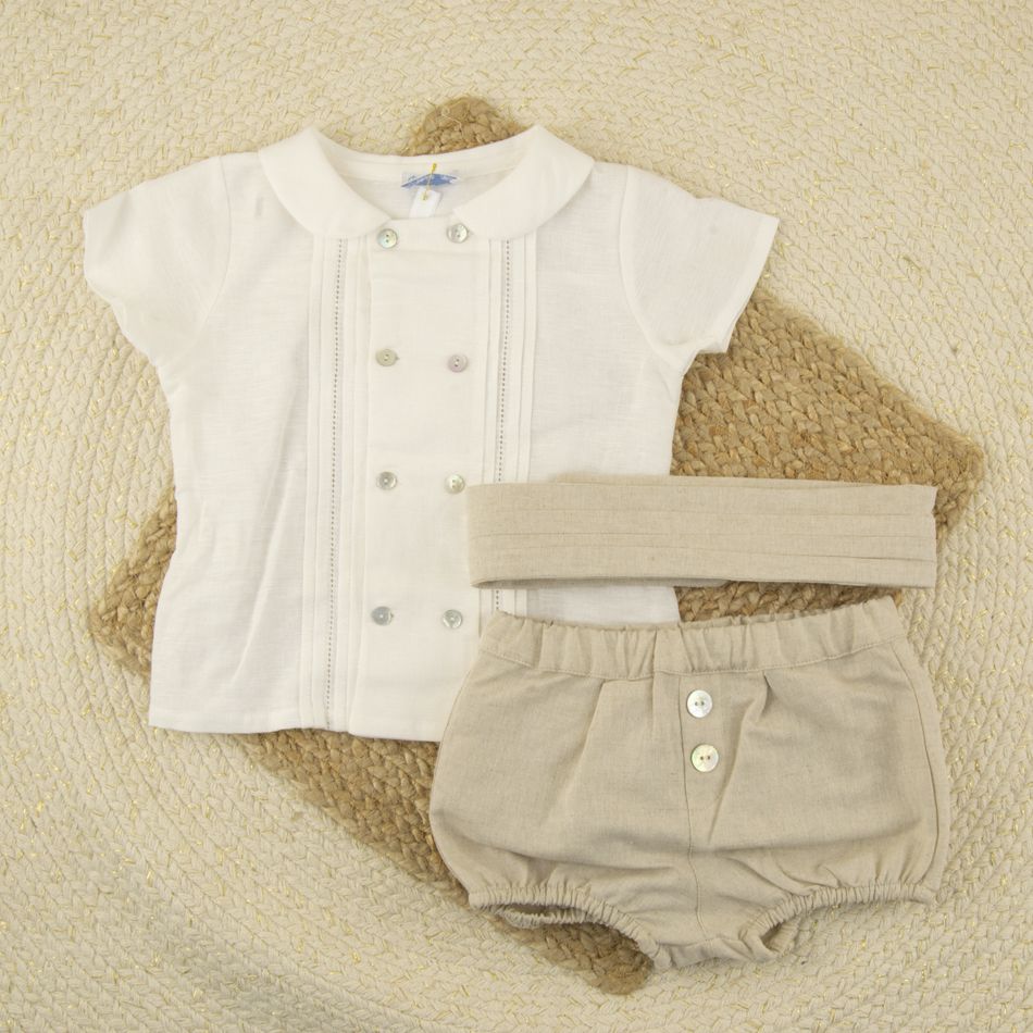 Este conjunto bebé ceremonia beige de la familia Guadalmez es la definición de elegancia infantil masculina con inspiración clásica. Una propuesta pensada para celebraciones especiales donde buscamos equilibrio entre tradición y suavidad estética.