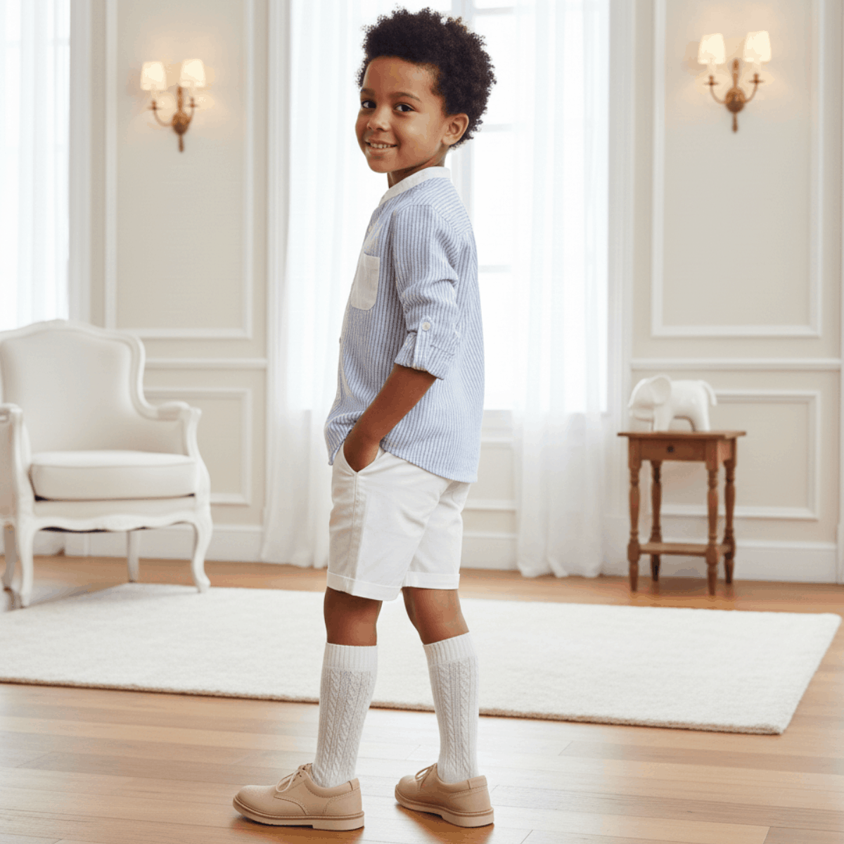 Porque representa la esencia de la elegancia infantil bien entendida. Porque combina tradición mediterránea y confección cuidada. Porque forma parte de una selección experta realizada desde nuestra Boutique de la Castellana, donde priorizamos diseño coherente, tejidos nobles y estética heredable.