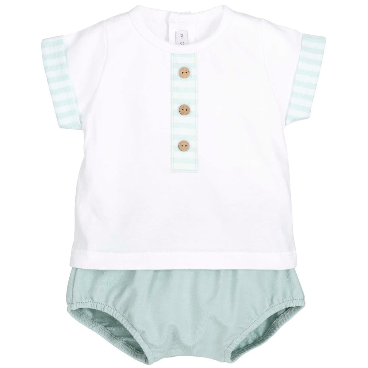 Dulce y cómodo conjunto de bebé con camiseta y pololo en color verde agua, perfecto para los días de primavera y verano.