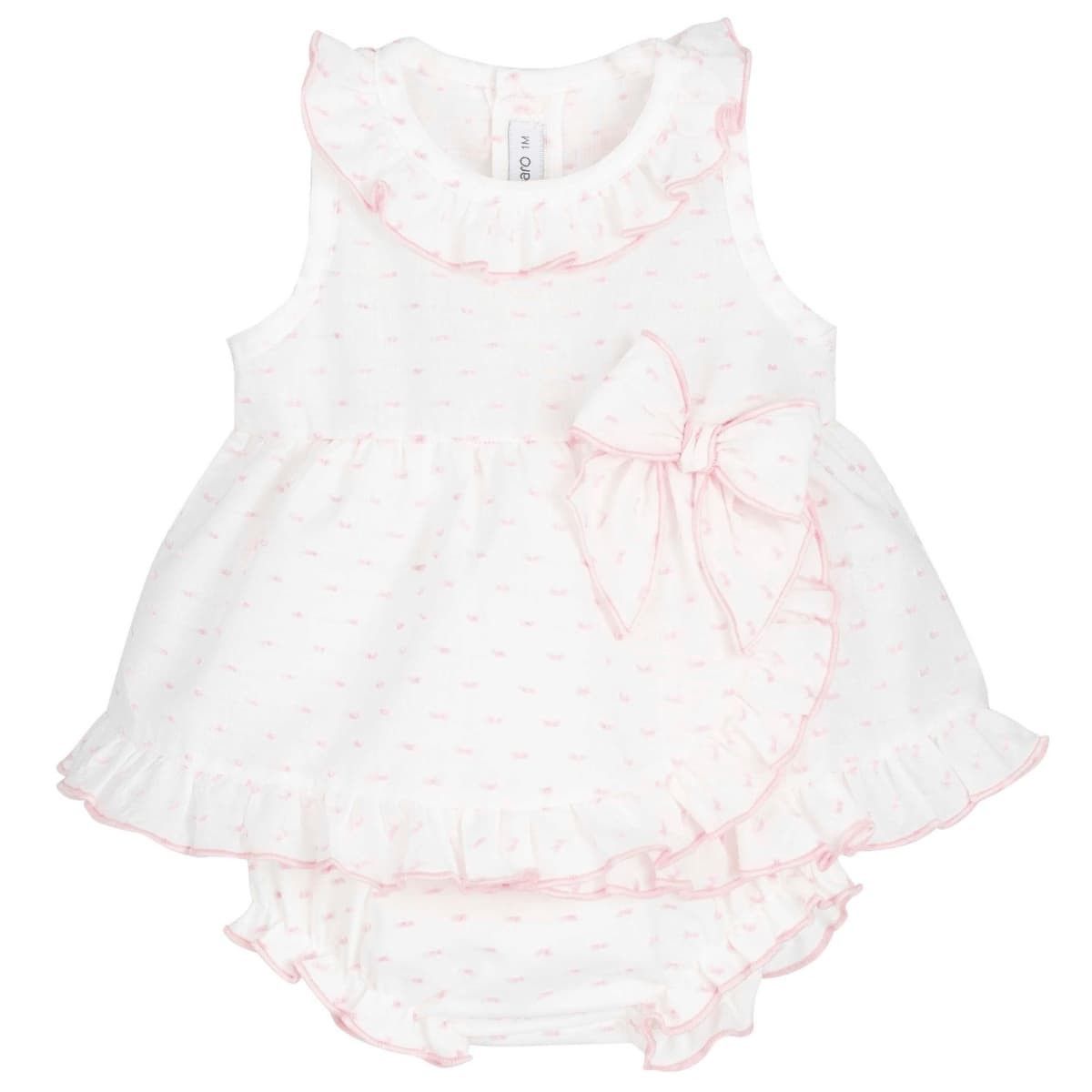 Pelele de bebé en color blanco con delicado estampado rosa, ideal para los meses más cálidos ?.