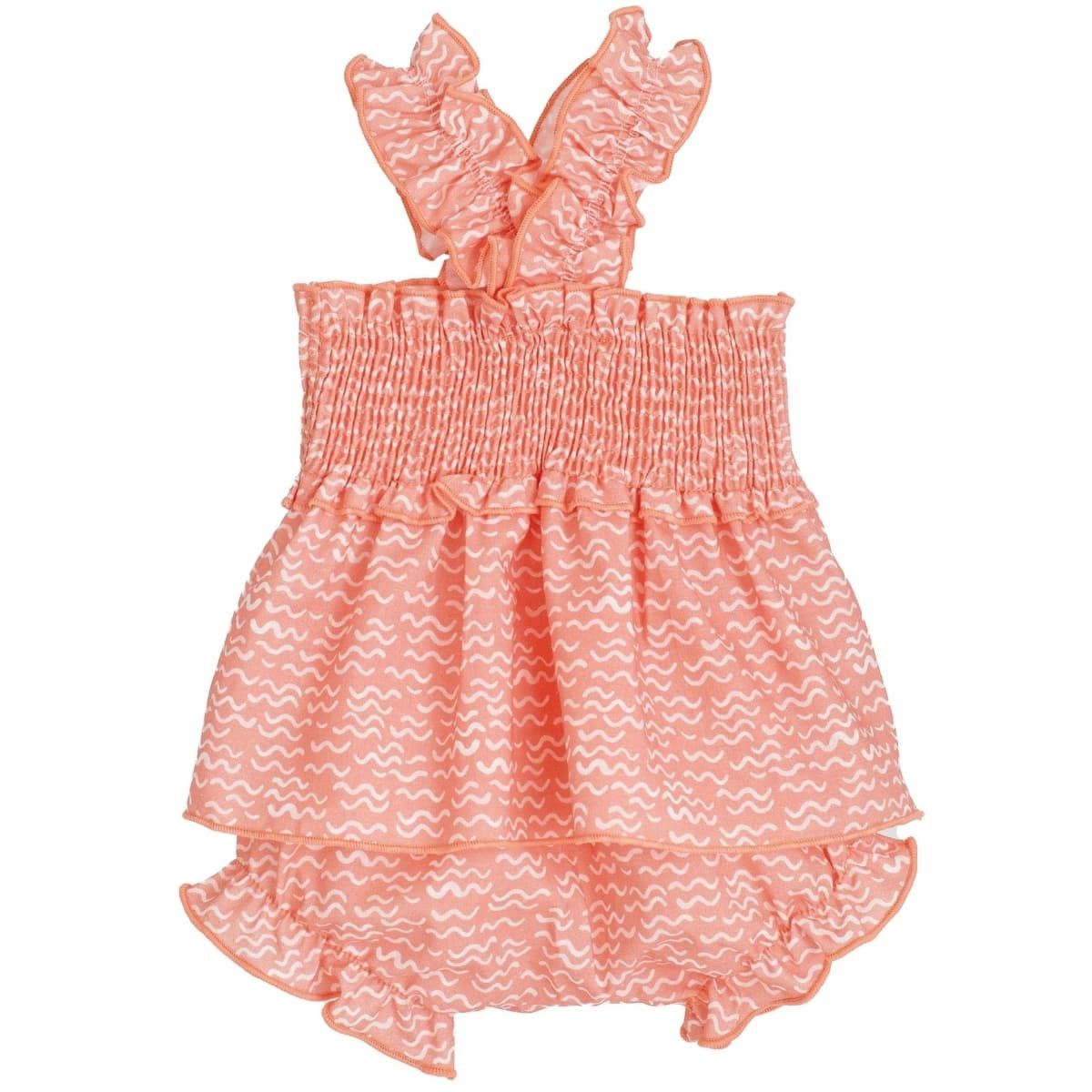 El vestido destaca por su cuerpo fruncido elástico y tirantes con volantes, que aportan un estilo dulce y veraniego.
