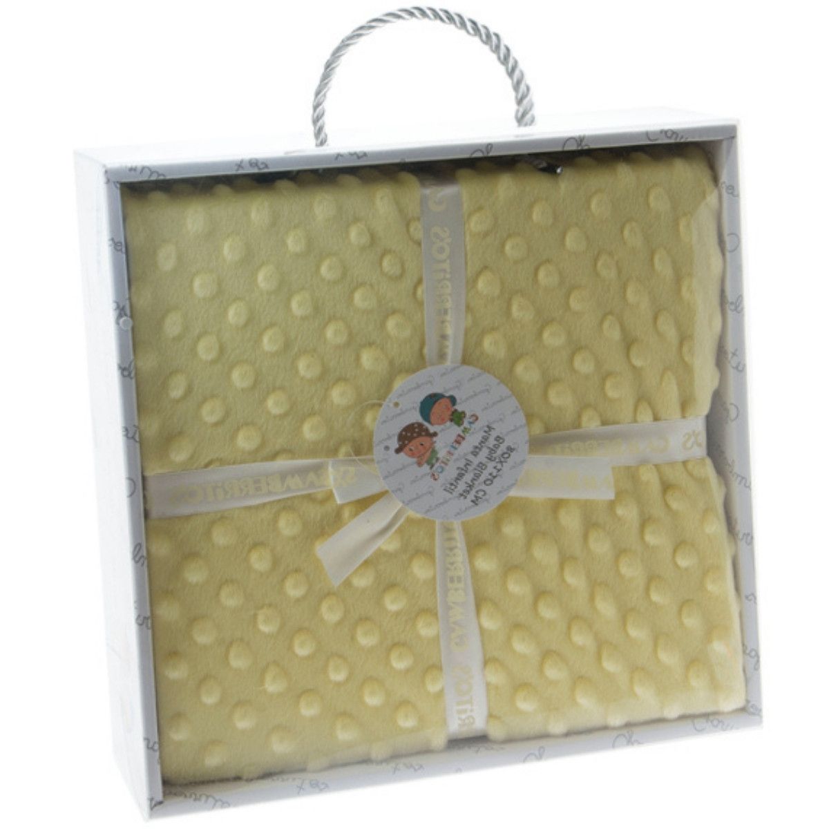 Confeccionada en tejido de tacto aterciopelado con relieve de topitos, es ideal para usar en la cuna, el carrito o durante los momentos de descanso y arrullo.