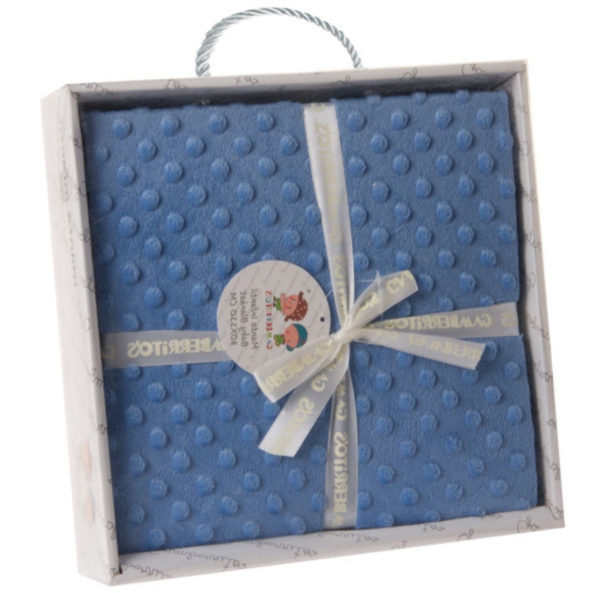 Confeccionada en tejido de tacto aterciopelado con relieve de topitos, es ideal para usar en la cuna, el carrito o durante los momentos de descanso y arrullo.
