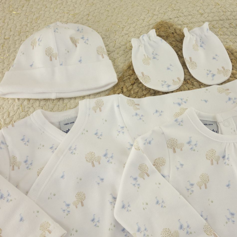 ¡Un conjunto delicado y completo que envuelve a tu bebé en suavidad y ternura desde su primer día!