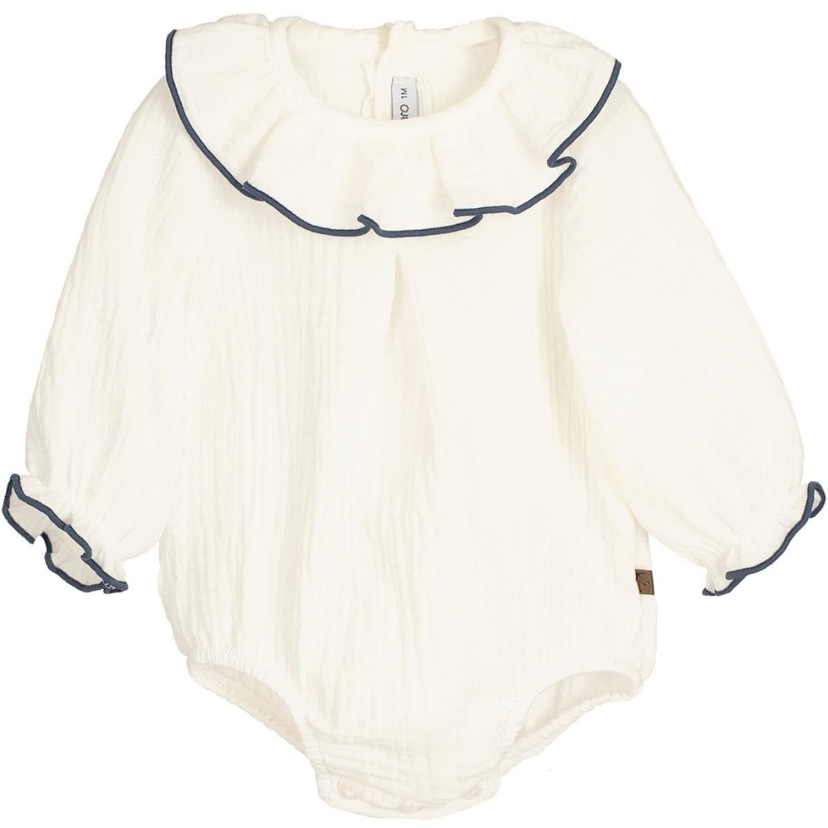 Este pelele de muselina color crudo es una prenda básica y elegante que no puede faltar en el armario de tu bebé.