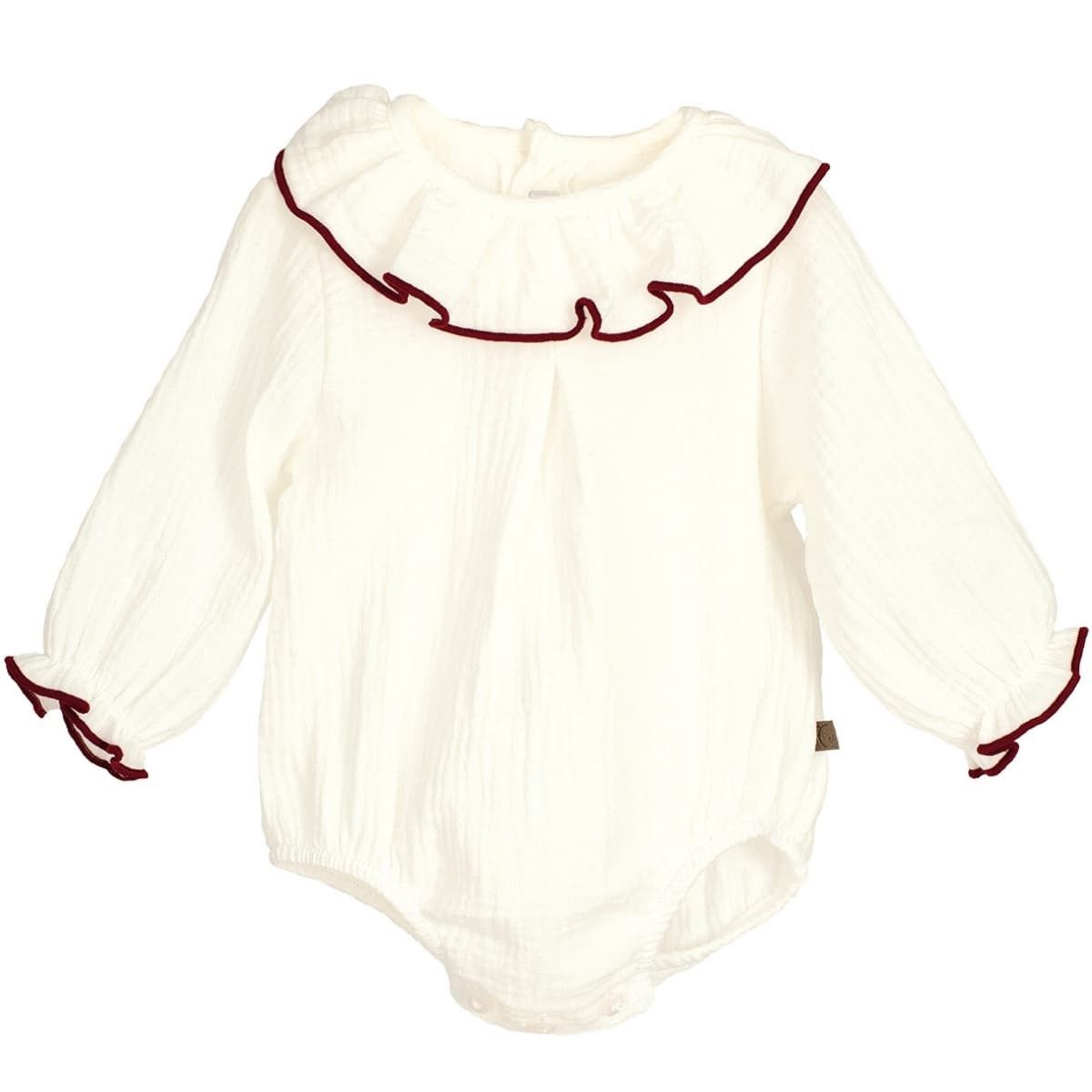 Este encantador pelele en muselina color crudo combina suavidad, elegancia y comodidad en una prenda ideal para cualquier ocasión.