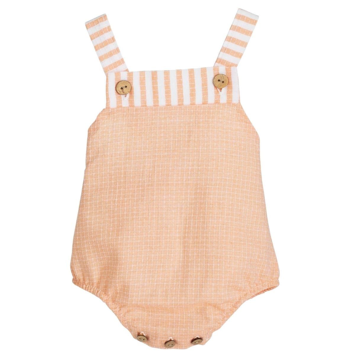 Dulce ranita de bebé en tono melocotón con un delicado tejido texturizado y detalles de rayas en la parte superior. Un diseño veraniego, ligero y muy cómodo para los más pequeños ?.