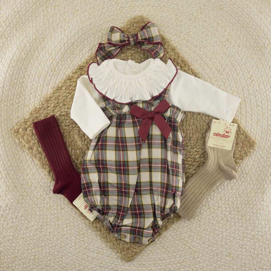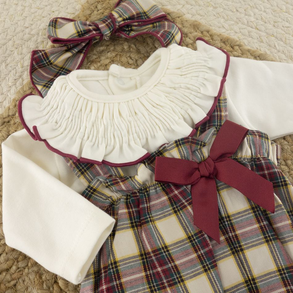 Este peto de cuadros en tonos burdeos, verde y mostaza combina el estilo tradicional con la comodidad, ideal para los días frescos de otoño e invierno.