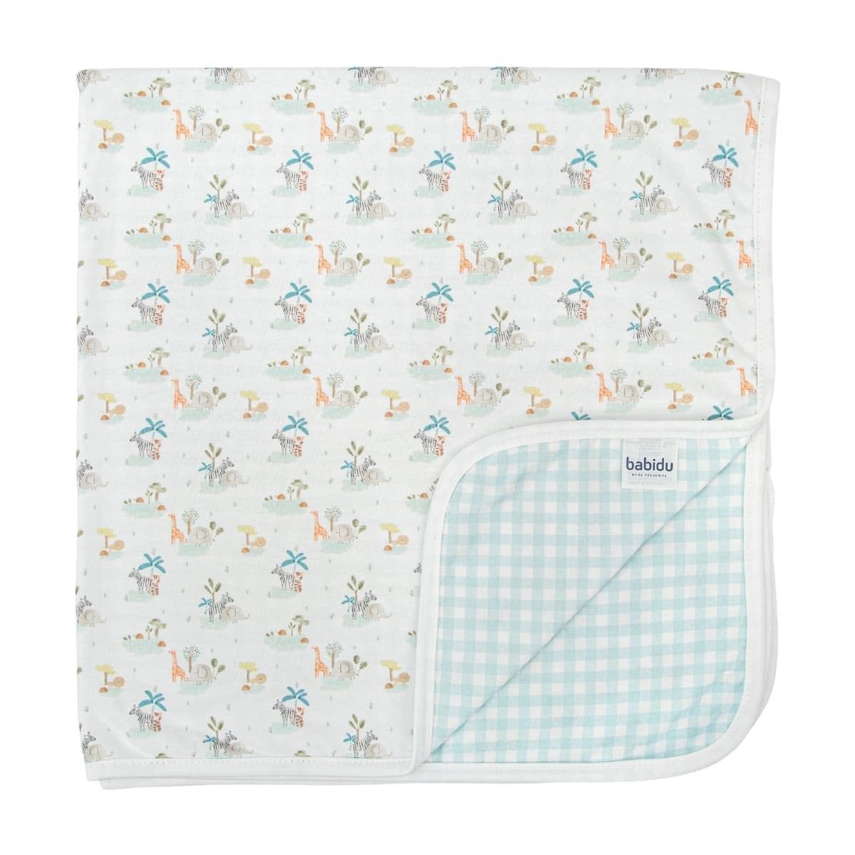 El arrullo bebé verde agua reversible algodón suave Babidu Aventura es una pieza esencial para los primeros días del recién nacido, diseñada para aportar seguridad, confort y una estética delicada desde el primer momento. Su diseño reversible combina un estampado infantil en tonos suaves con un elegante tejido vichy en verde agua, ofreciendo versatilidad y estilo.