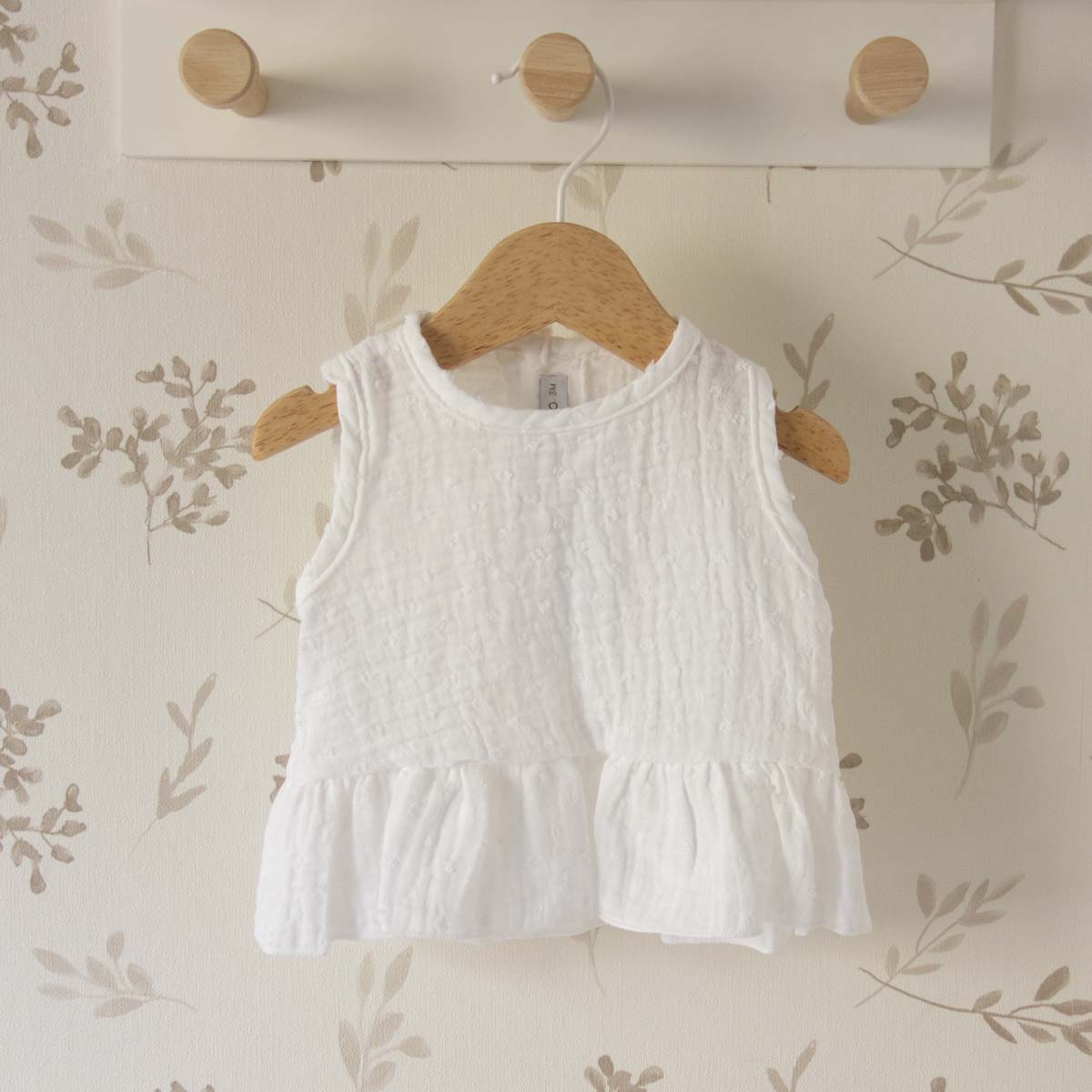 Esta blusa bebé algodón blanco plumeti es una prenda perfecta para los meses de primavera y verano, cuando la ligereza y la transpirabilidad del tejido se convierten en factores esenciales.