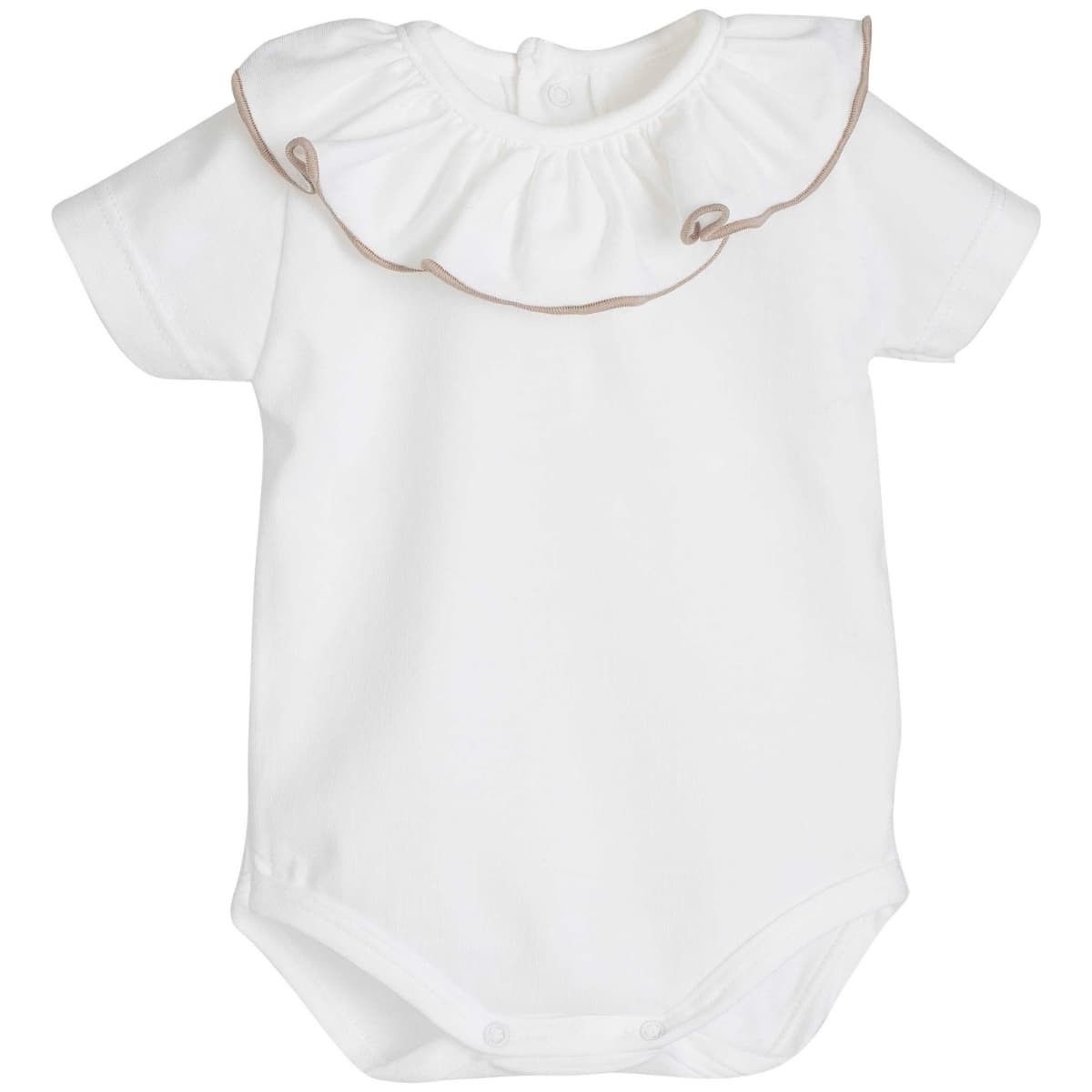Este body bebé arena combina perfectamente con pololos en tonos crudo, ranitas en lino o conjuntos en colores tierra. También es ideal para looks en tonos beige, blanco roto o verde suave, creando estilismos elegantes y muy naturales.