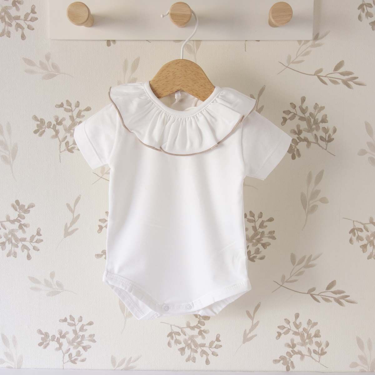 Confeccionado en 95% algodón y 5% elastano, este body garantiza transpirabilidad y adaptabilidad. Su tejido permite mantener la piel fresca durante los días cálidos, evitando irritaciones. El cuello volante aporta un detalle delicado sin incomodar al bebé.