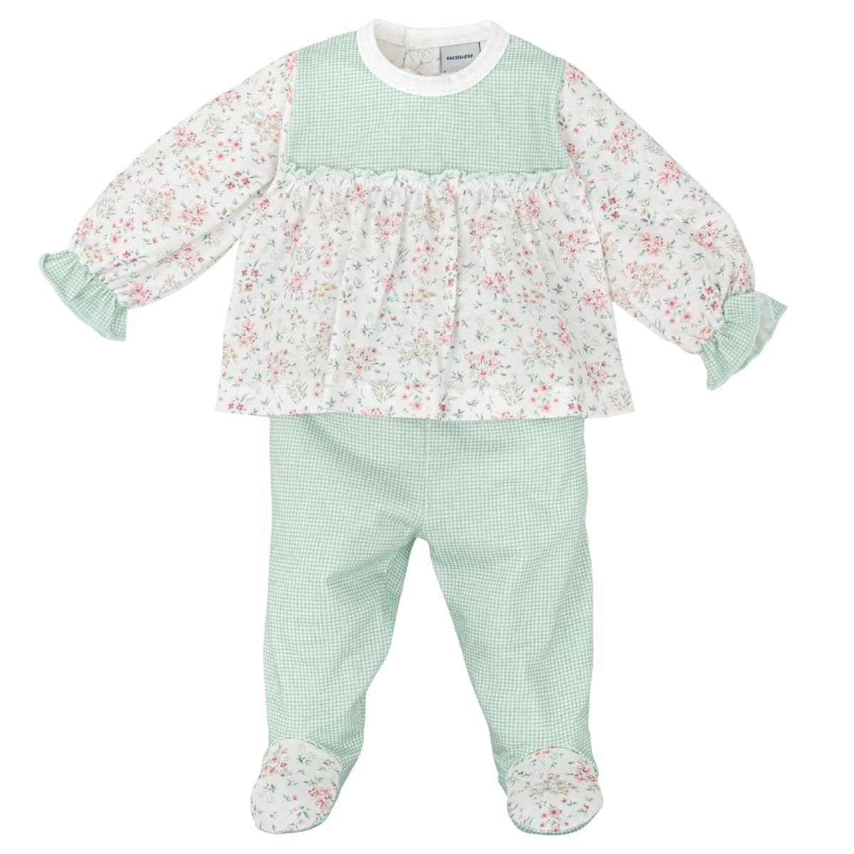 Conjunto polaina bebé niña verde de algodón suave