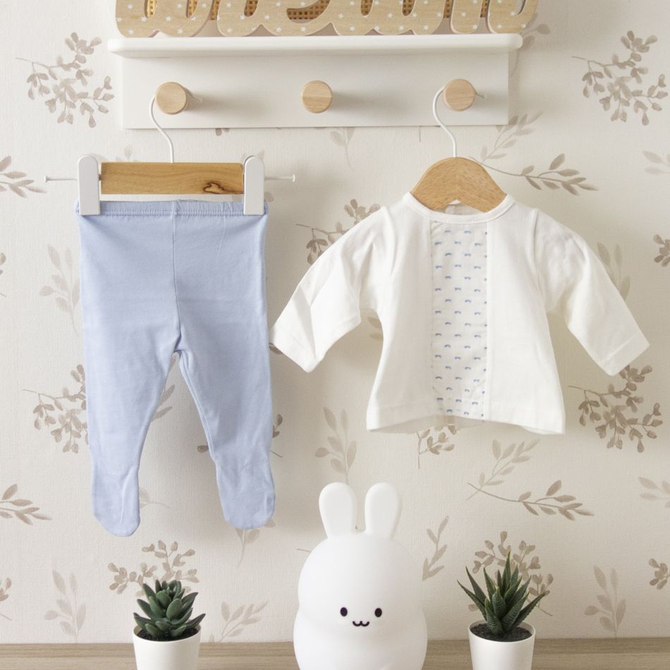 Confeccionado en algodón 100% natural, este conjunto ha sido diseñado para cuidar la piel delicada del recién nacido. El tejido permite una excelente transpiración y mantiene una temperatura agradable durante todo el día.