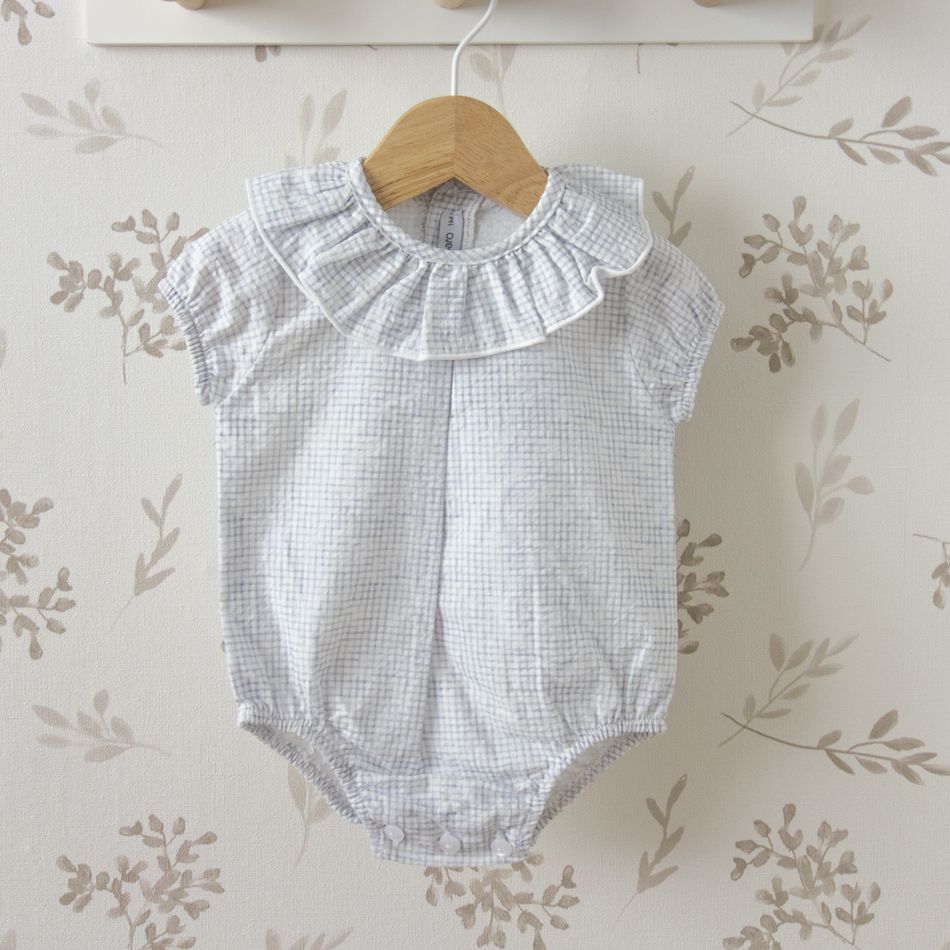 Pelele bebé cuadros azul suave con encanto infantil