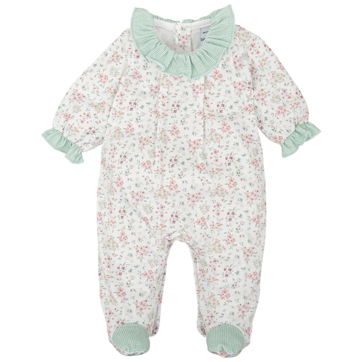 Pelele bebé niña verde floral de algodón suave