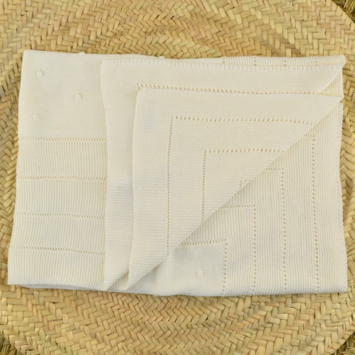 El punto perlé crea una textura fina y uniforme que resulta muy agradable al contacto con la piel del bebé. Además, permite que la manta sea ligera y transpirable.